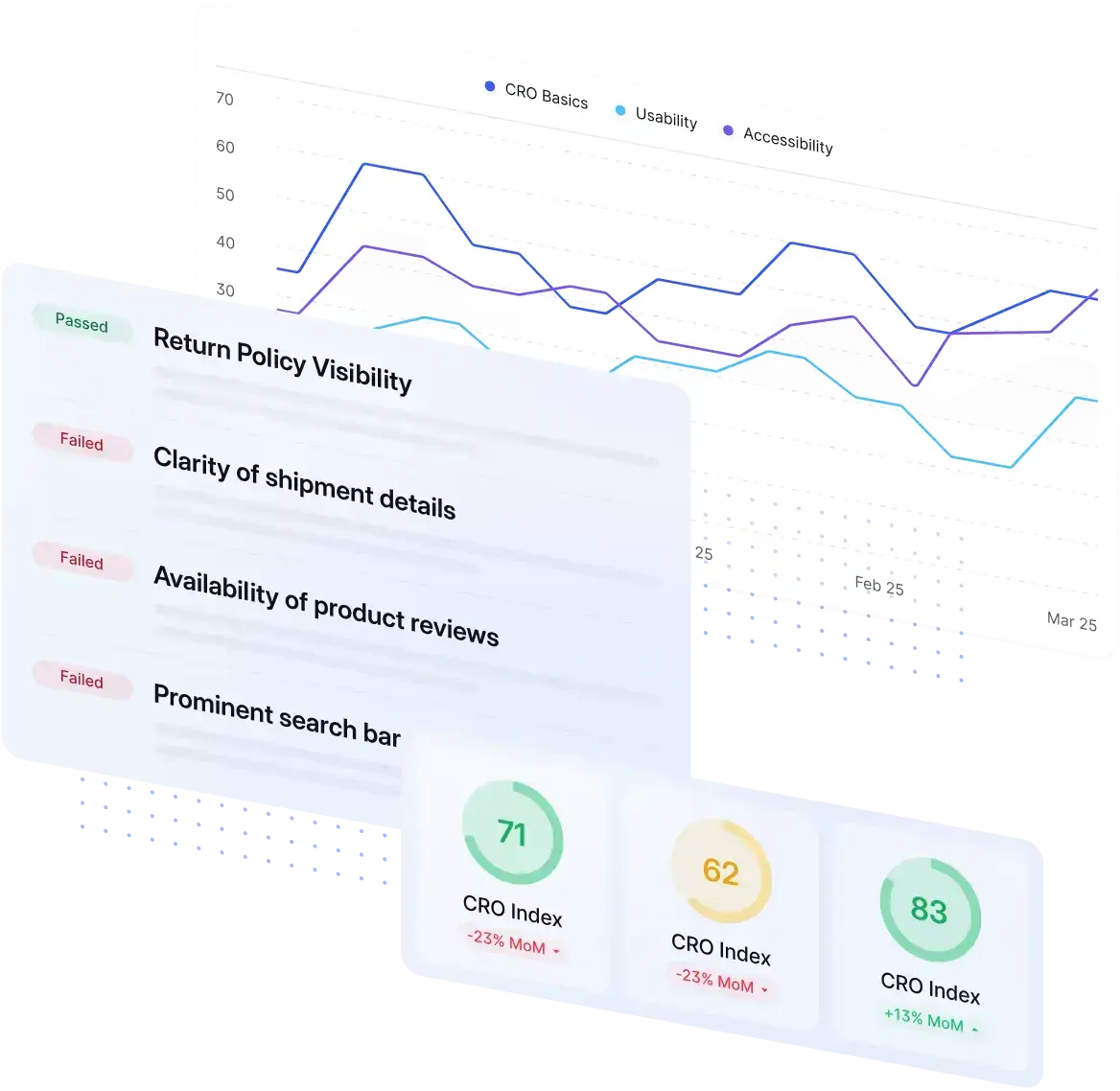 Your AI-powered CRO Index Score is a 0–100 benchmark built on real conversion best practices.